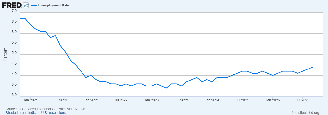 美國勞工部公布最新 11 月非農就業報告,新增非農就業僅為 6.4 萬人,失業率更上升至 4.6%、創下 2021 年 9 月以來的新高水平,並且薪資增長同步下降,雙雙顯示就業市場較為弱勢,但放緩幅度仍屬於溫和。